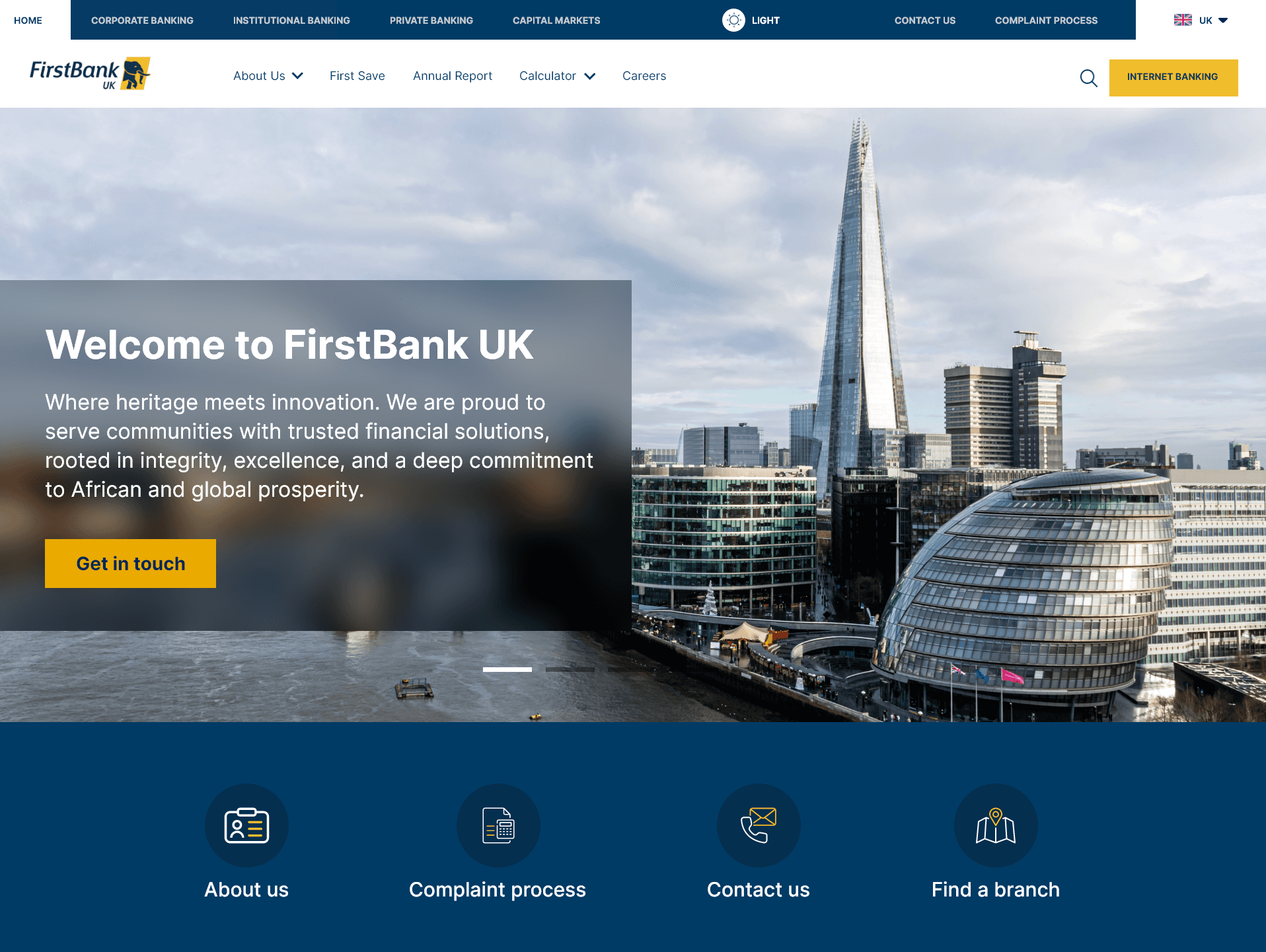 Transforming First Bank’s online presence with a sleek, modern look and user-friendly accessibility.